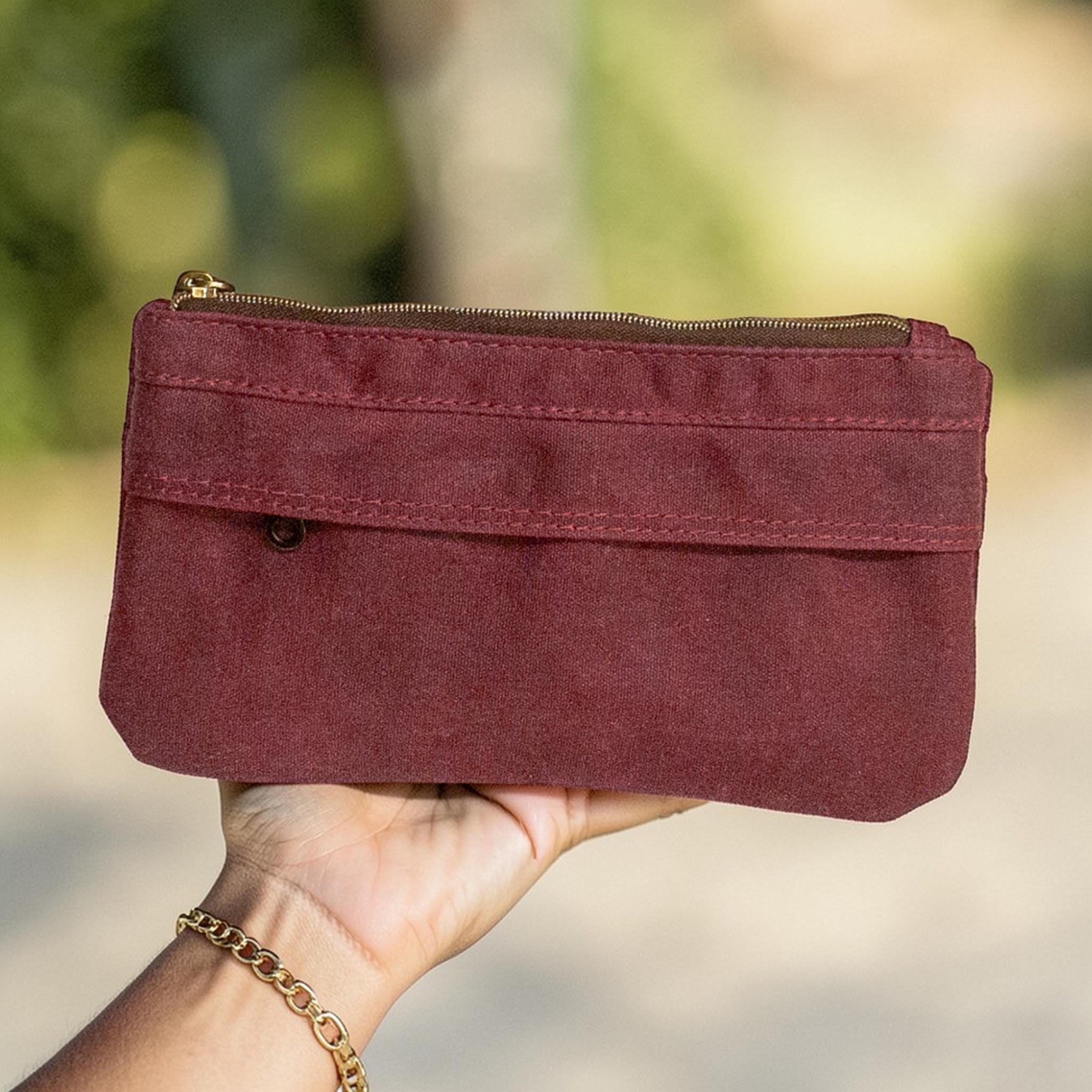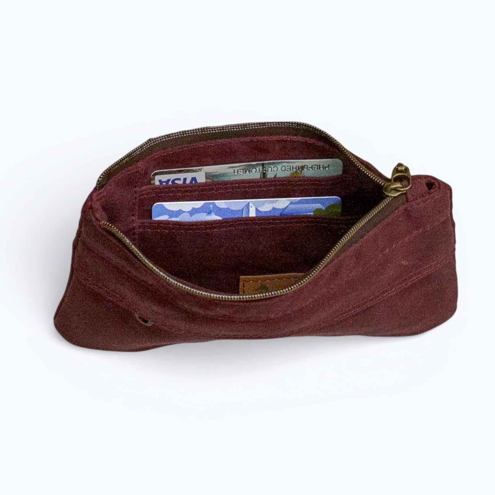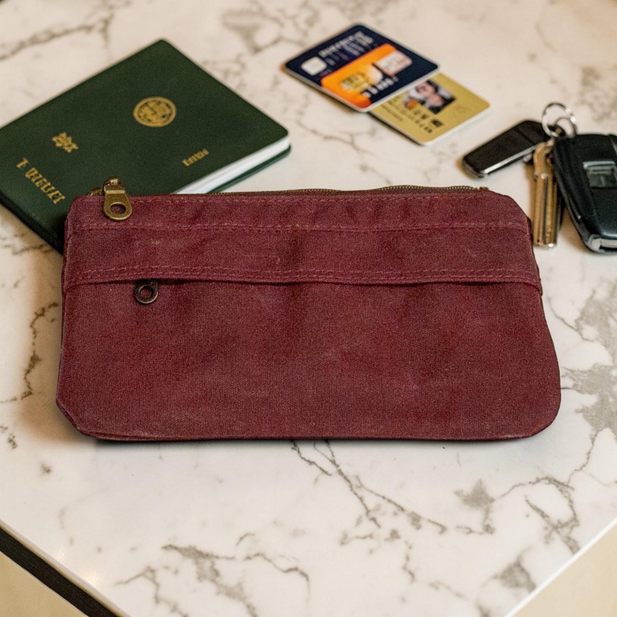 Keep your essentials secure and organized with this stylish Waxed Canvas Wallet. Featuring a double zip design, hidden zip pocket, and two card slots, this versatile accessory is perfect for on-the-go adventures. Handmade with high-quality waxed canvas, it's durable and functional. A must-have for those who value both style and practicality!