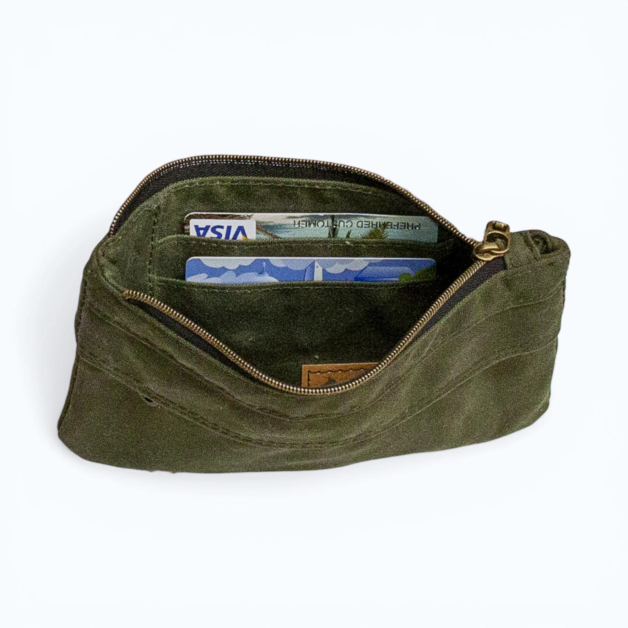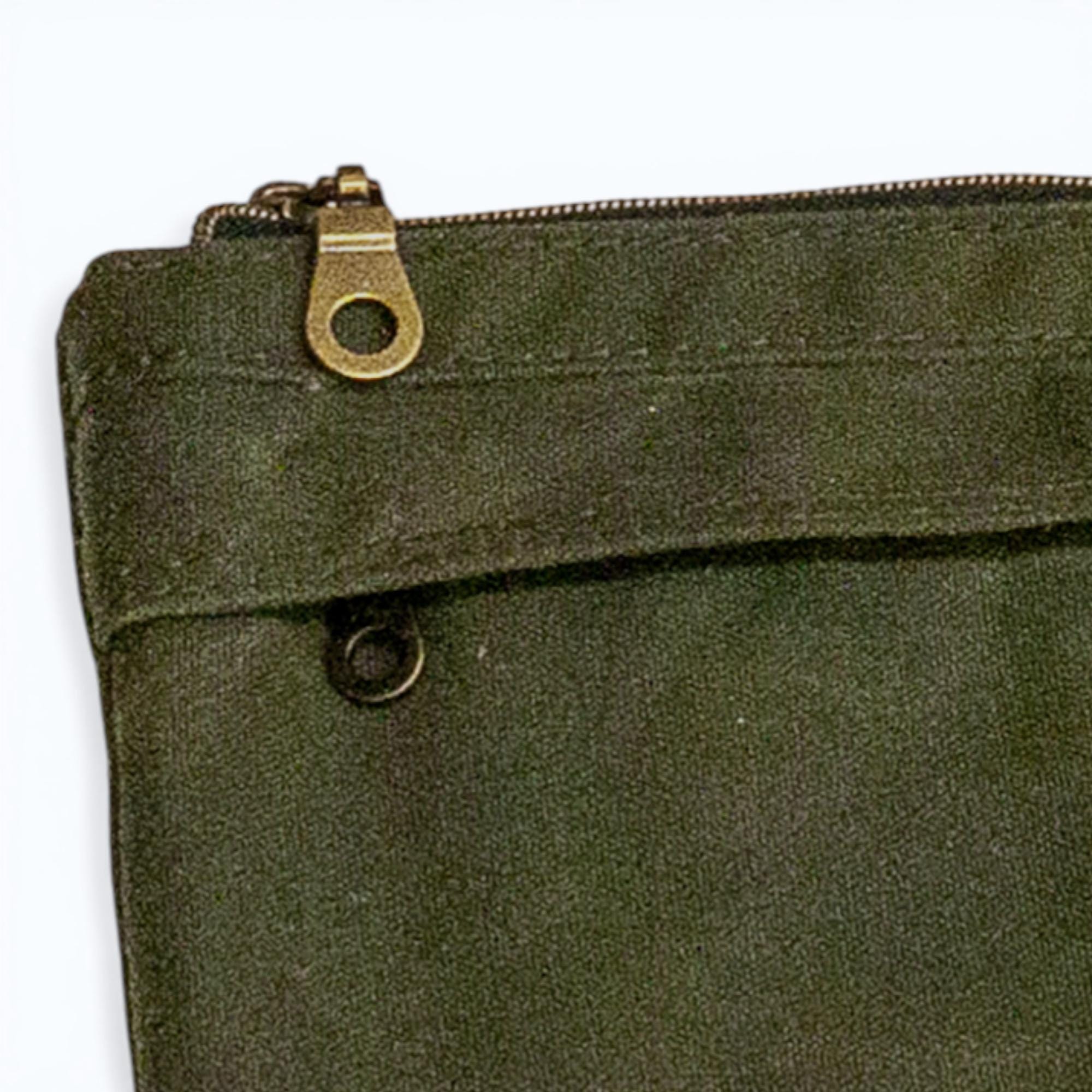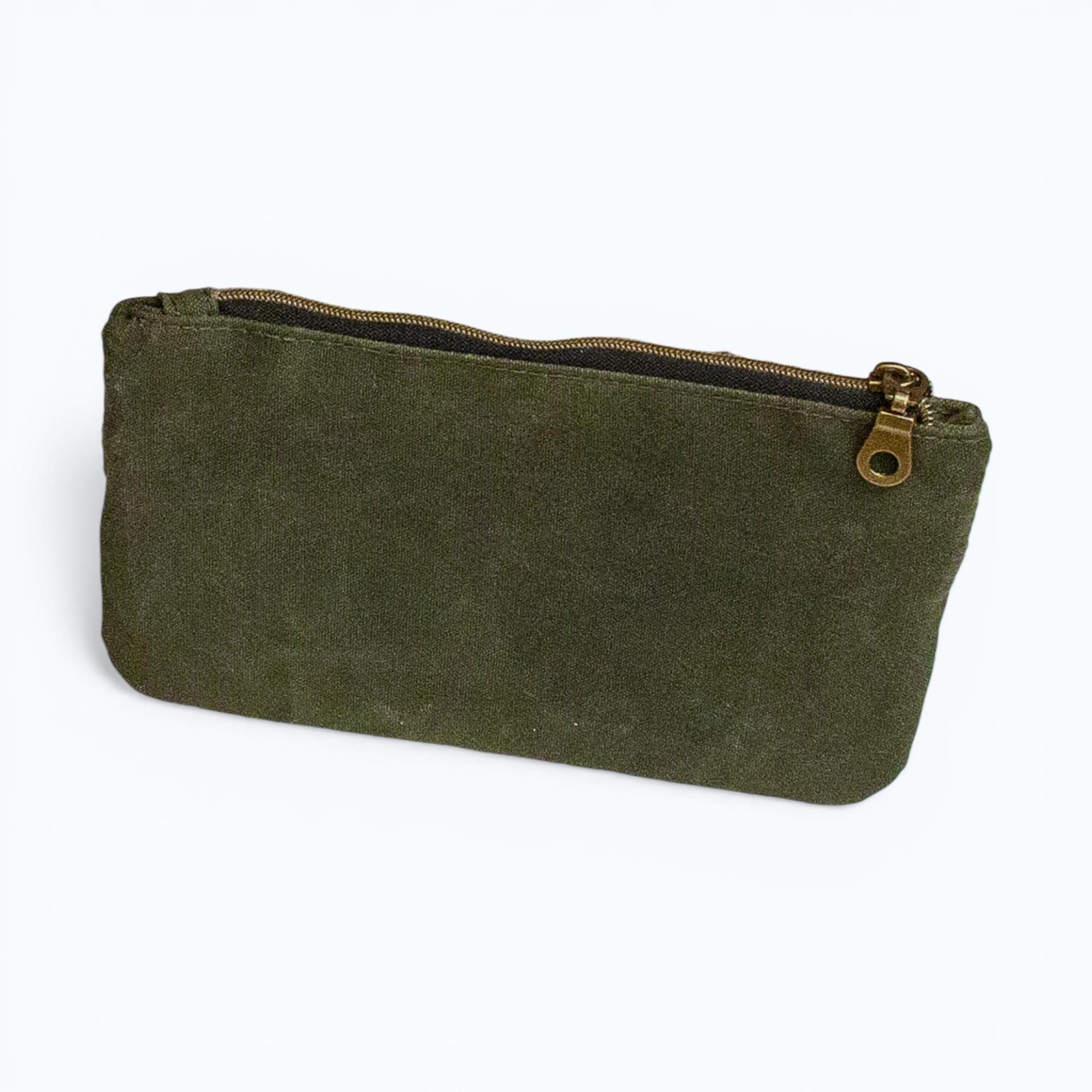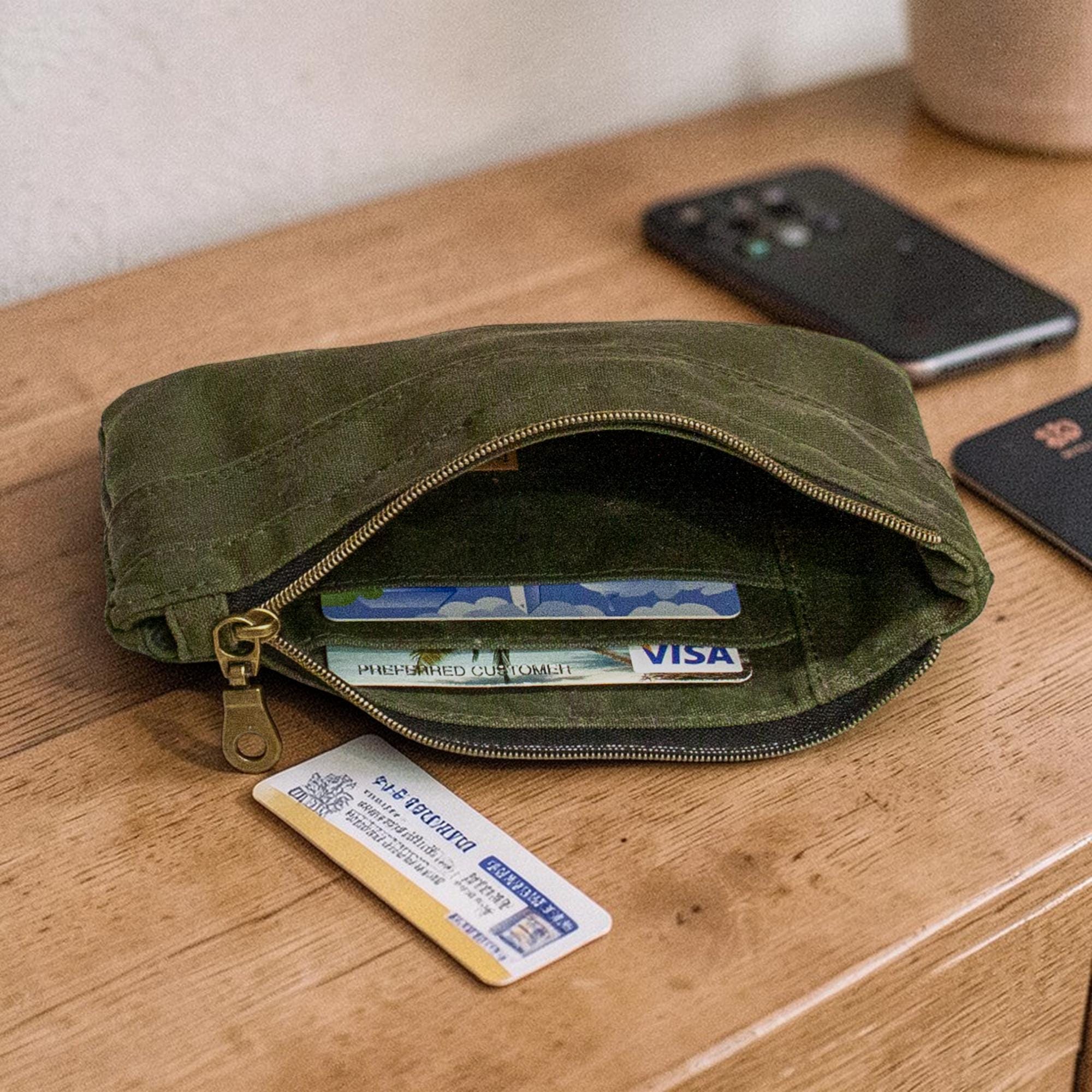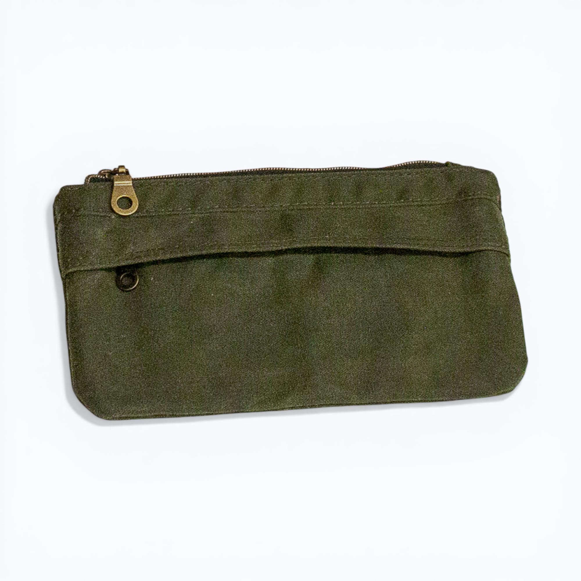 Keep your essentials secure and organized with this stylish Waxed Canvas Wallet. Featuring a double zip design, hidden zip pocket, and two card slots, this versatile accessory is perfect for on-the-go adventures. Handmade with high-quality waxed canvas, it's durable and functional. A must-have for those who value both style and practicality!