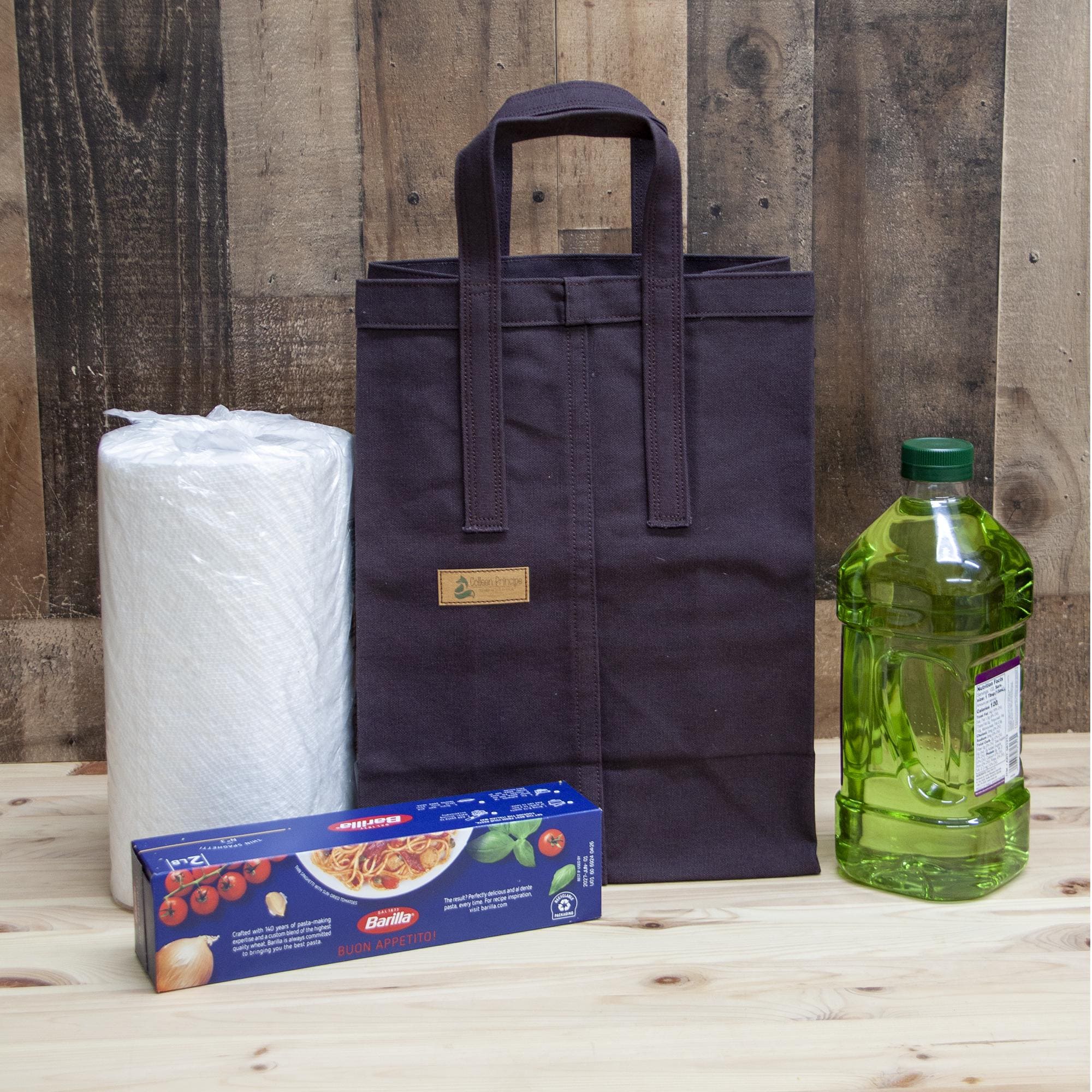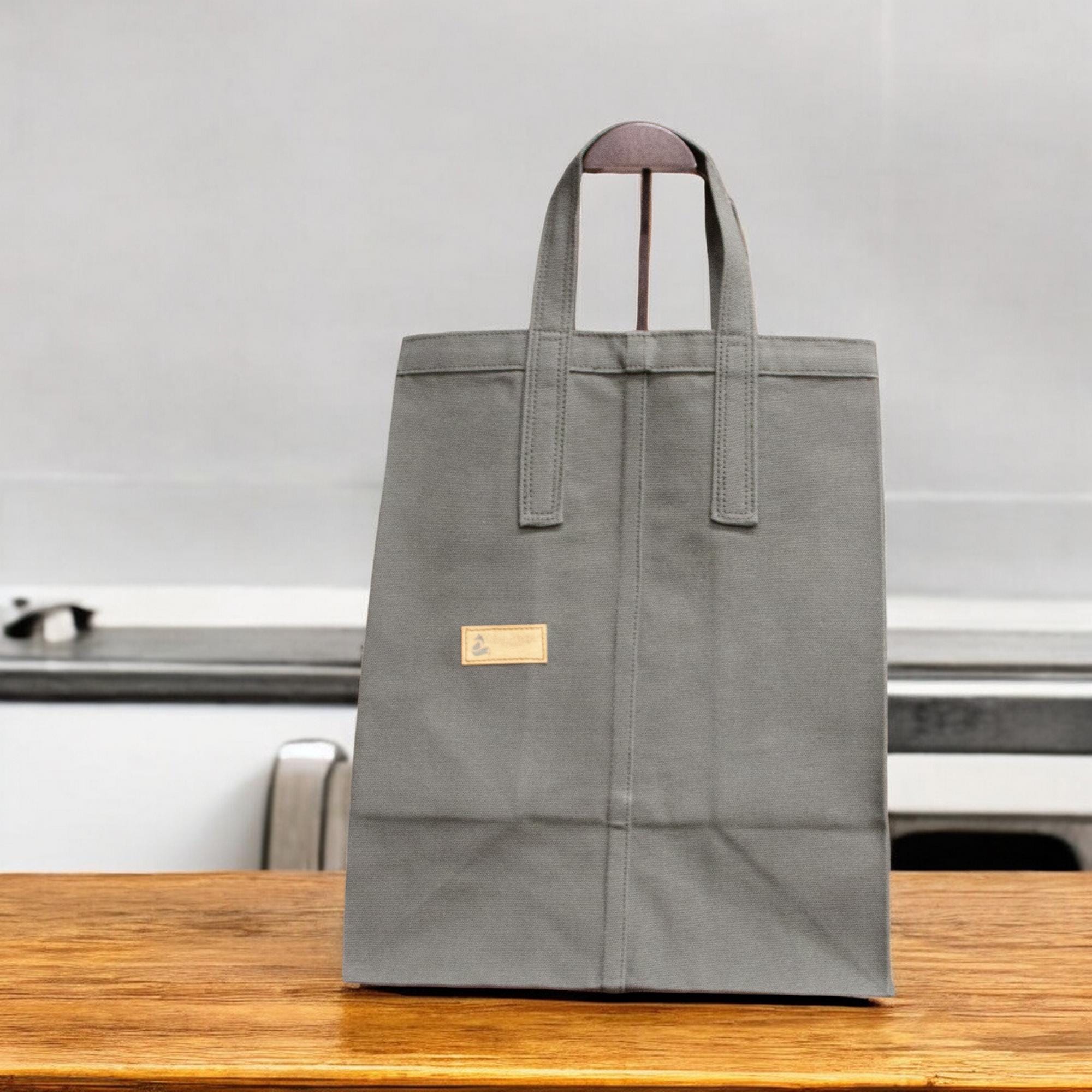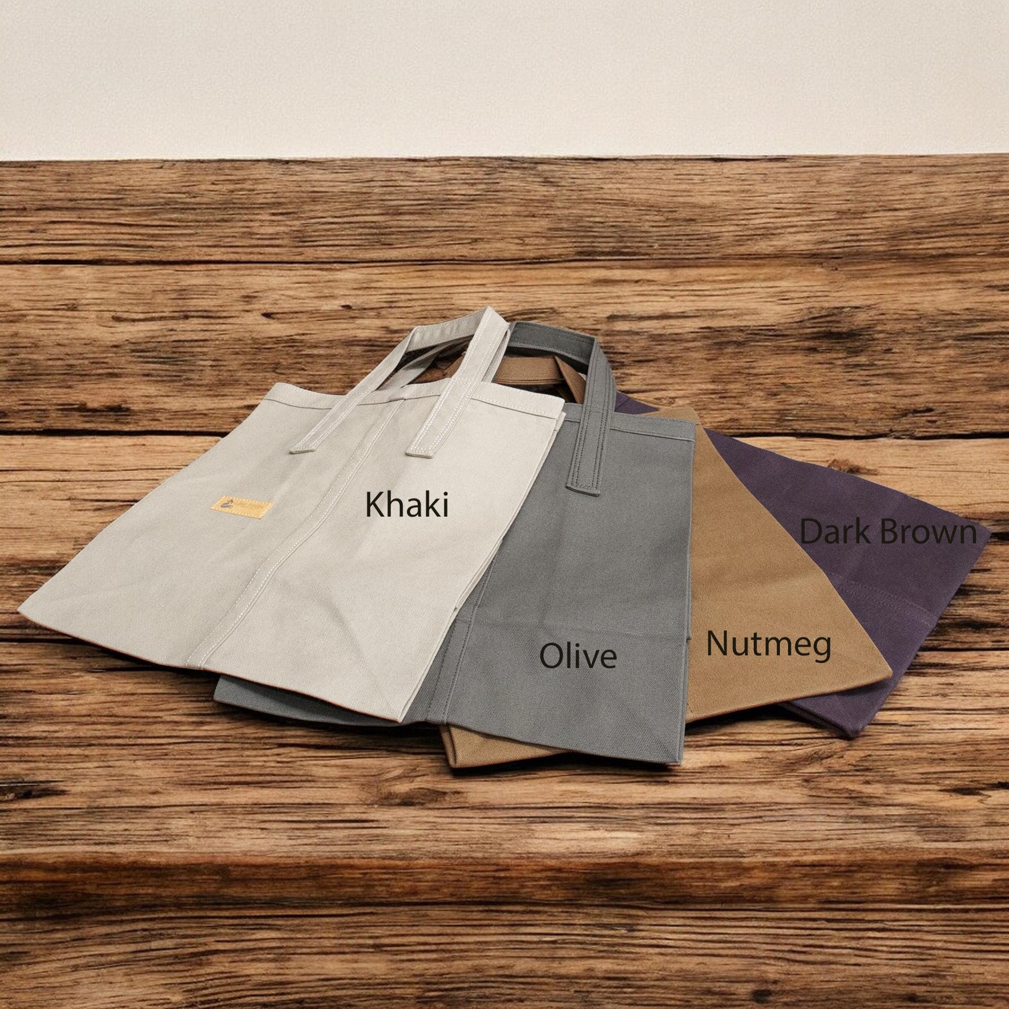Modeled after the classic brown paper grocery bag right down to the handles. Double reinforced stitching makes these bags highly durable. ZERO RAW EDGES. All seams are enclosed. Super simple, highly durable, reusable time and time again. Feel better about the environment while looking smart and practical when shopping at the market with these stylish shopping totes. Made with heavy-duty #10 duck canvas. 100% vegan, and extremely eco-friendly. Nylon heavy duty thread.