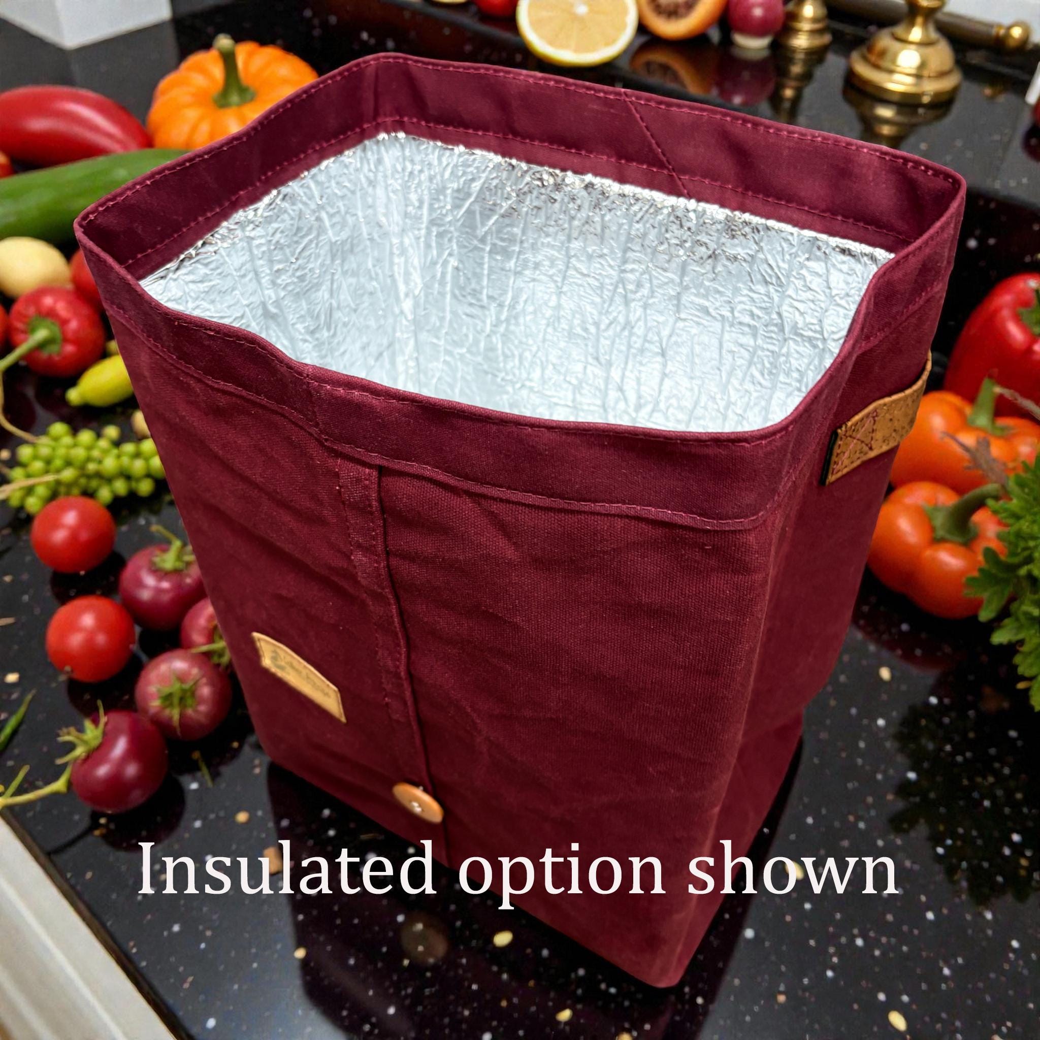 Our waxed canvas lunch bags are made using #10 Duck waxed canvas from Fairfield Fabrics (Martexin Original Wax) located in New Jersey. Vegan friendly reusable lunch bag for women, men and children.