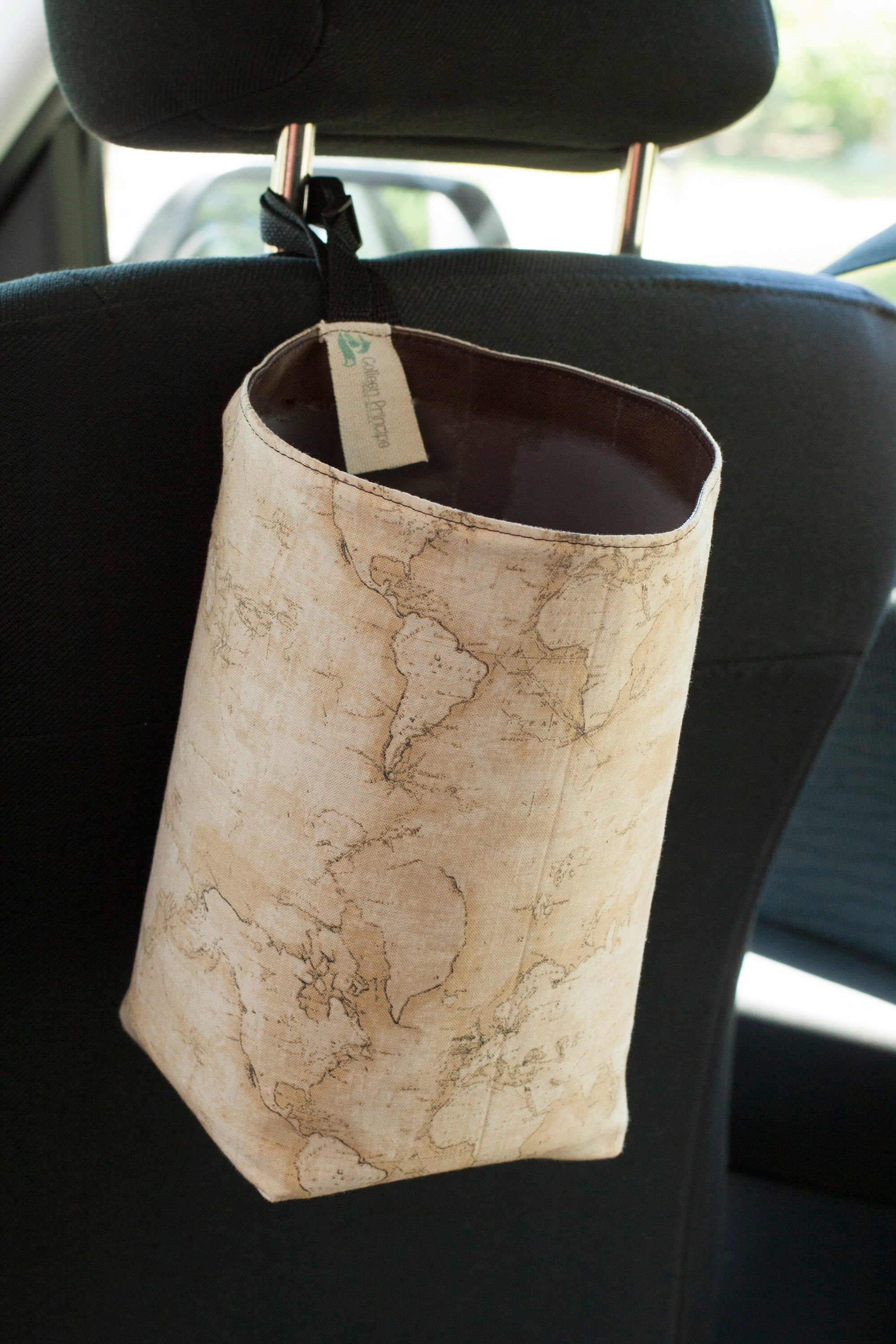 Our regular size car trash bag made with regular weight fabric on the exterior and solid heavyweight canvas on the interior. The strap is made with 1-inch wide nylon webbing and secured with a plastic side release buckle. I have found this feature makes emptying the bag a whole lot easier. I use the time while refueling to empty mine!
